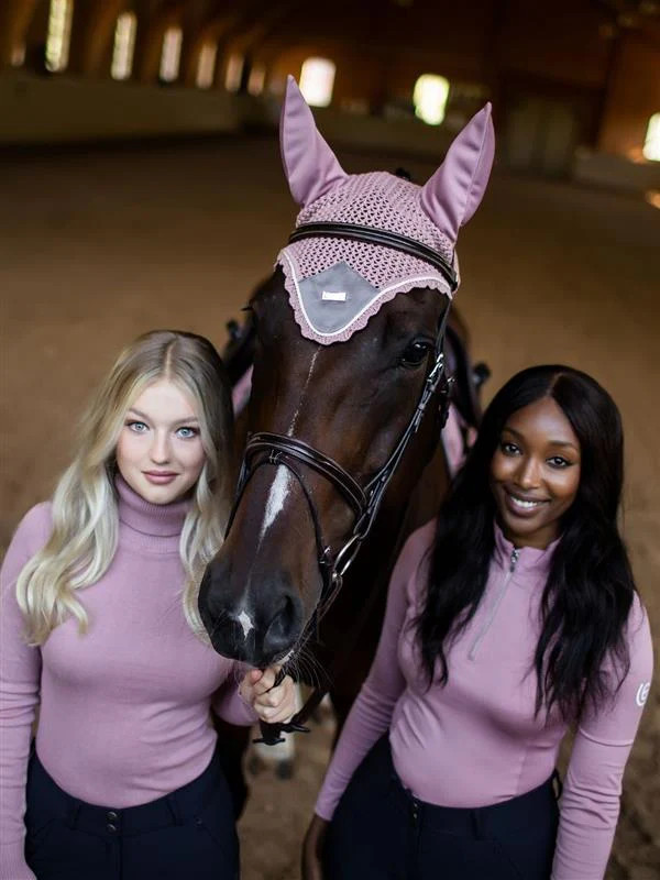 Luxurious crocheted ear bonnet in an elegant blue color with elastic cloth on the ears for extra comfort. It provides insect protection.